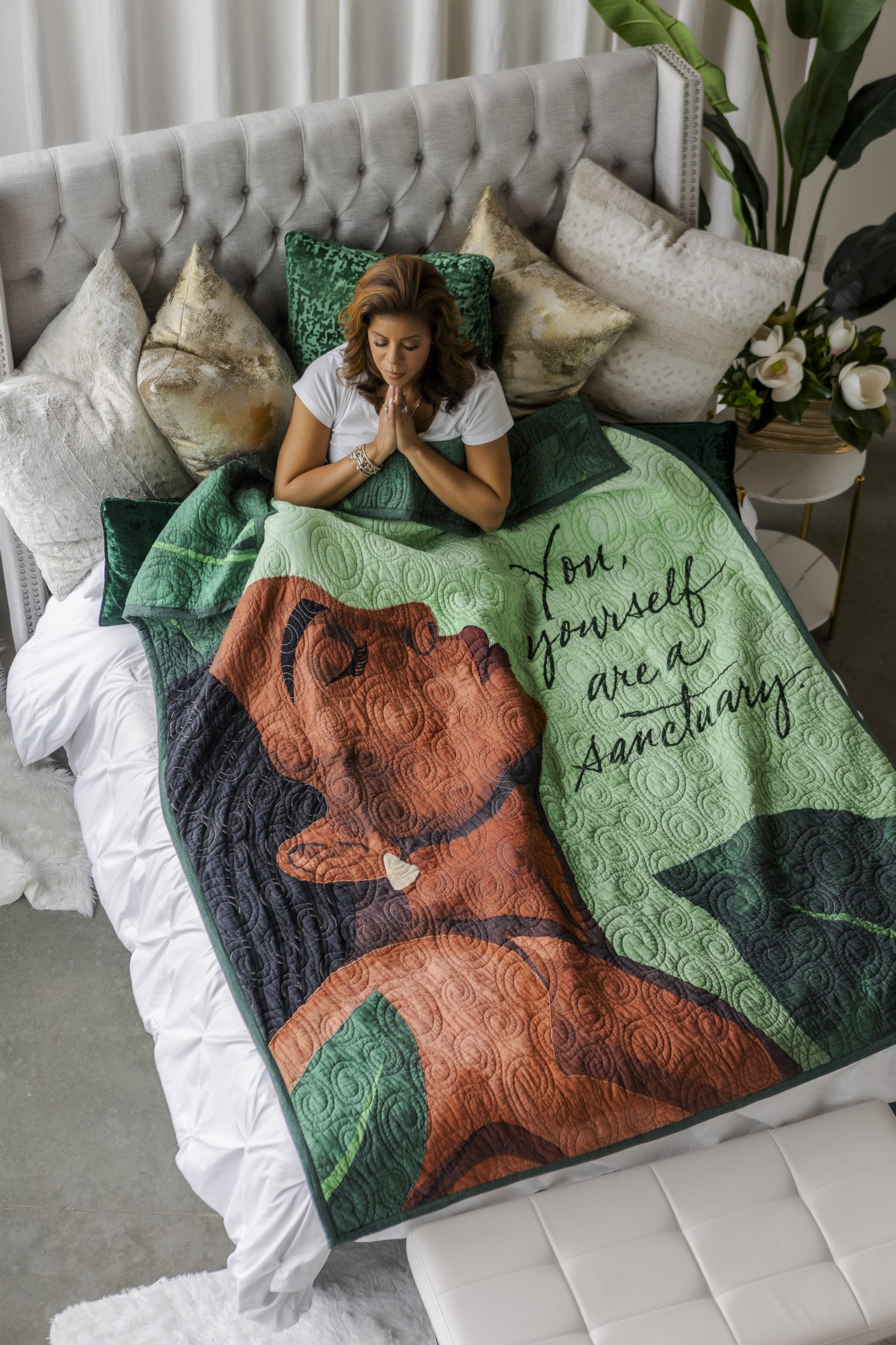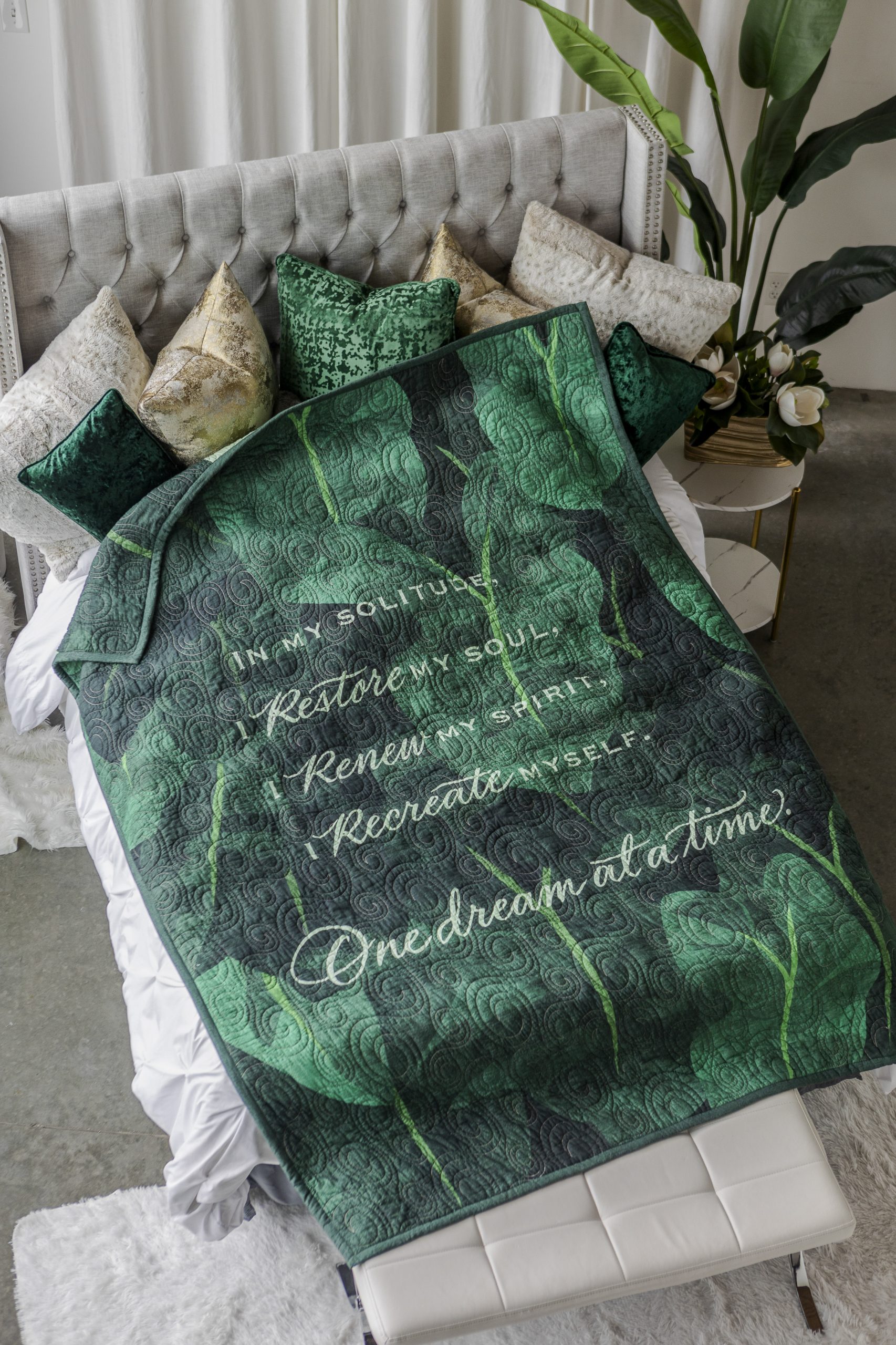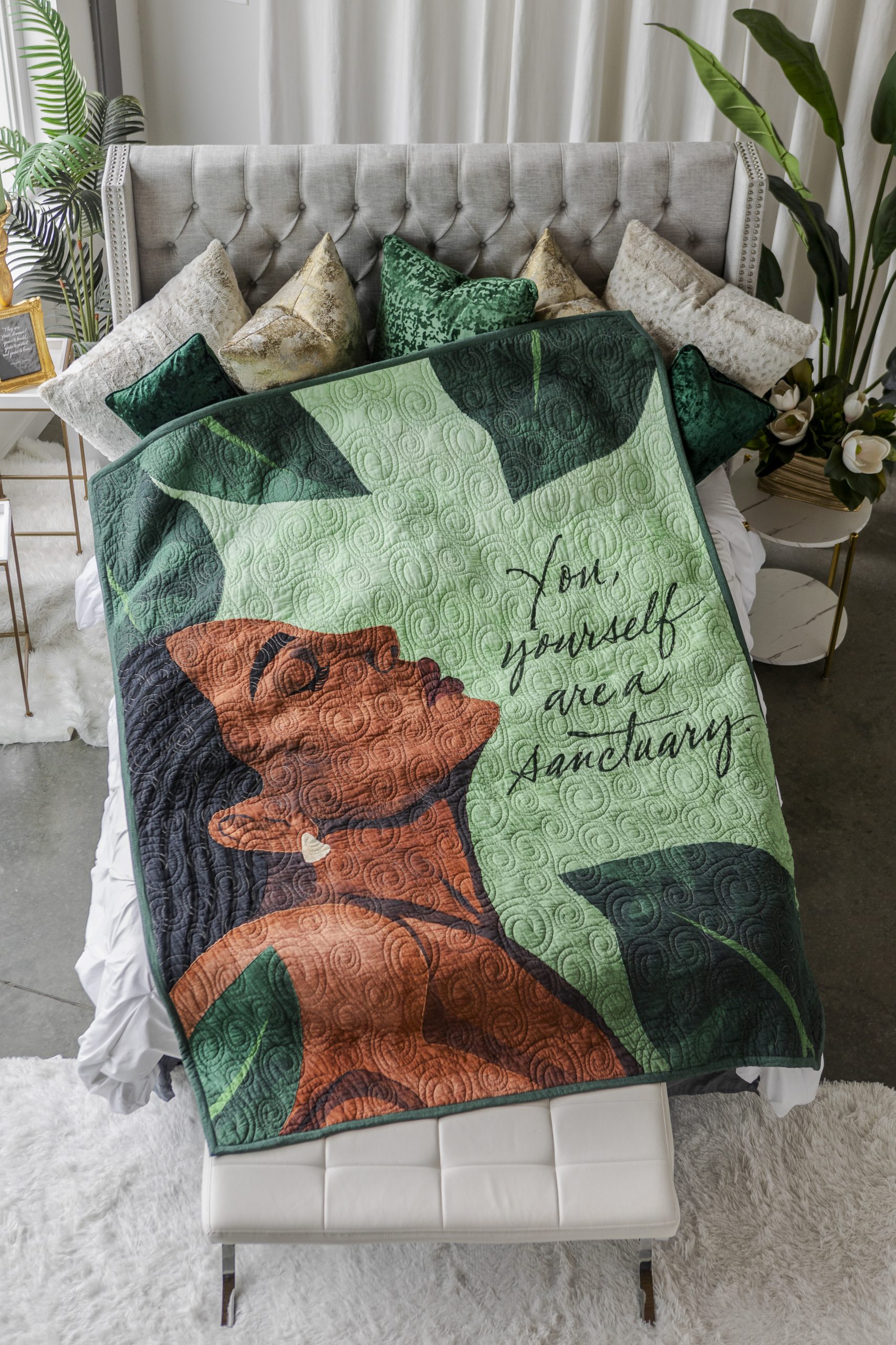 More than a quilt, it’s a visual affirmation and a daily ritual of return. Whether gifted or kept close, it serves as a gentle reminder: you are your own refuge, your own restoration, your own sacred space. A true sanctuary, stitched with intention and made to last beyond a lifetime.
