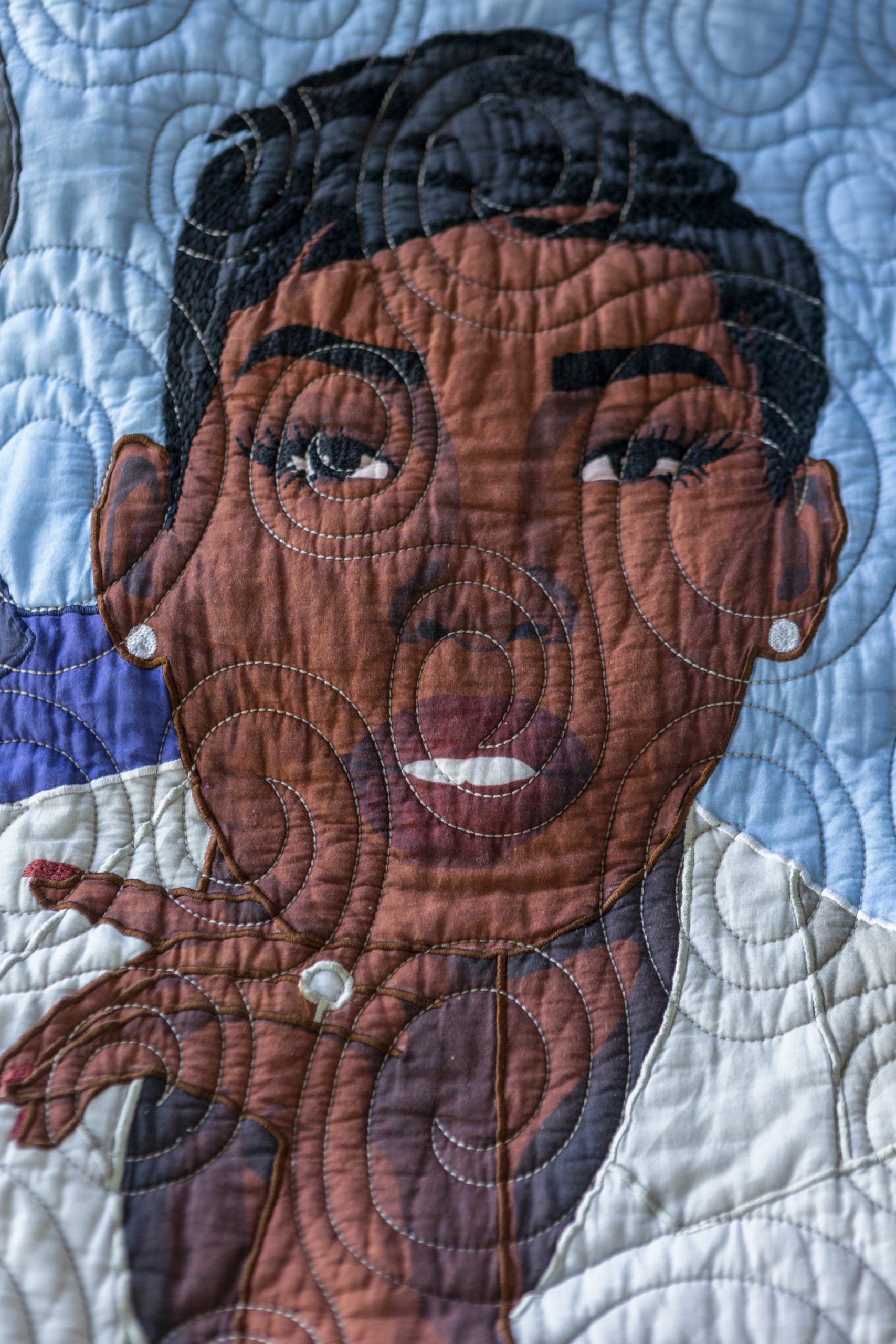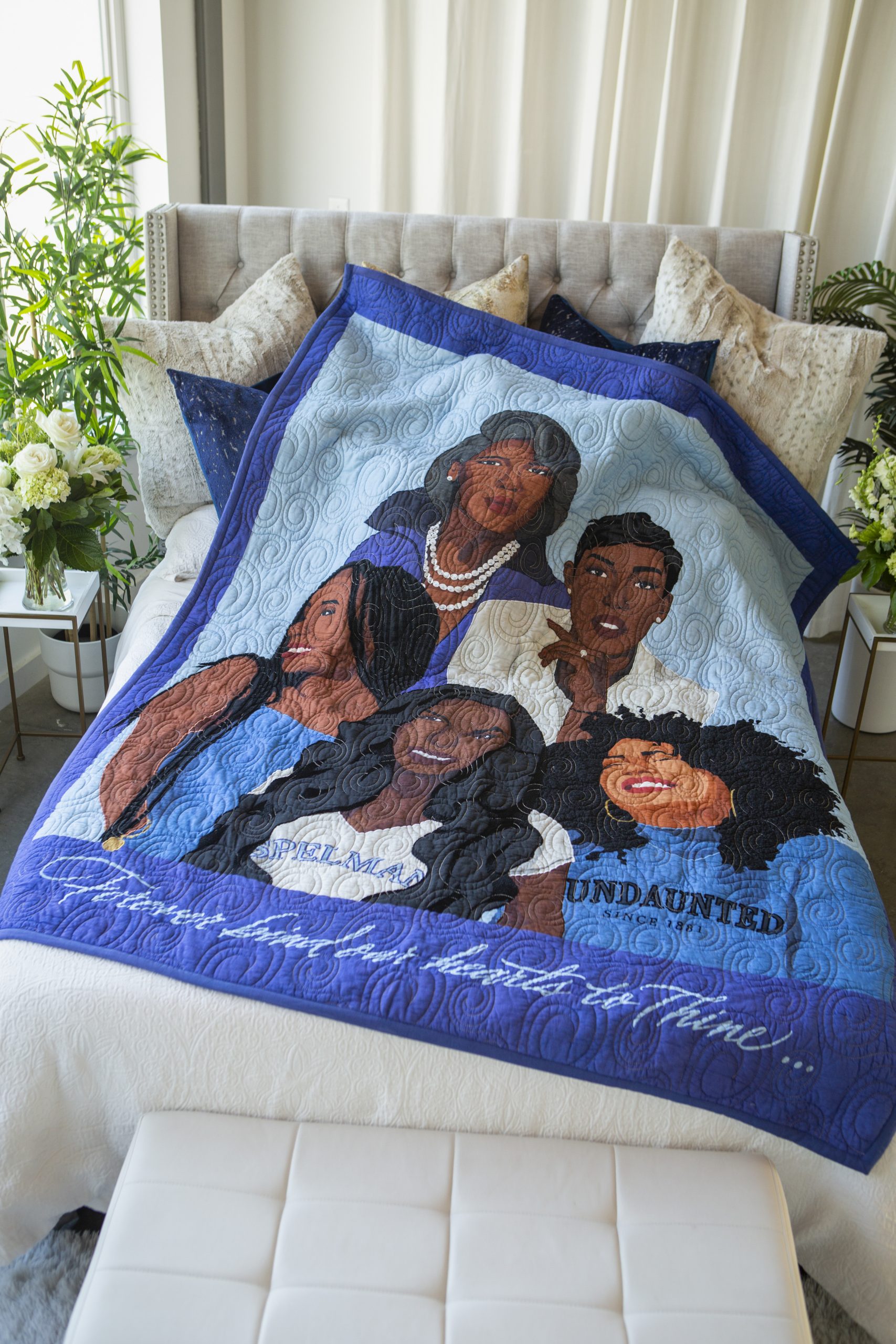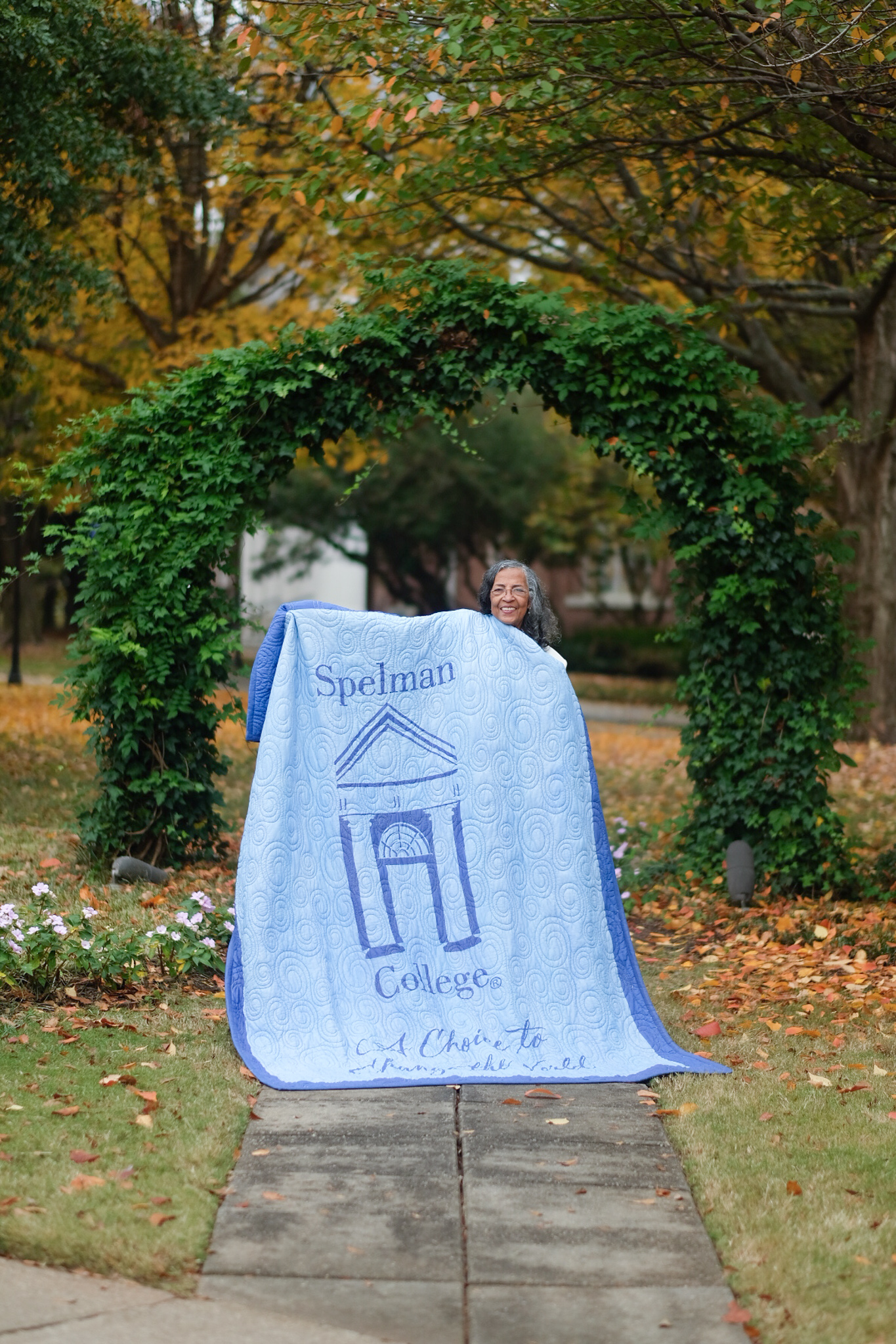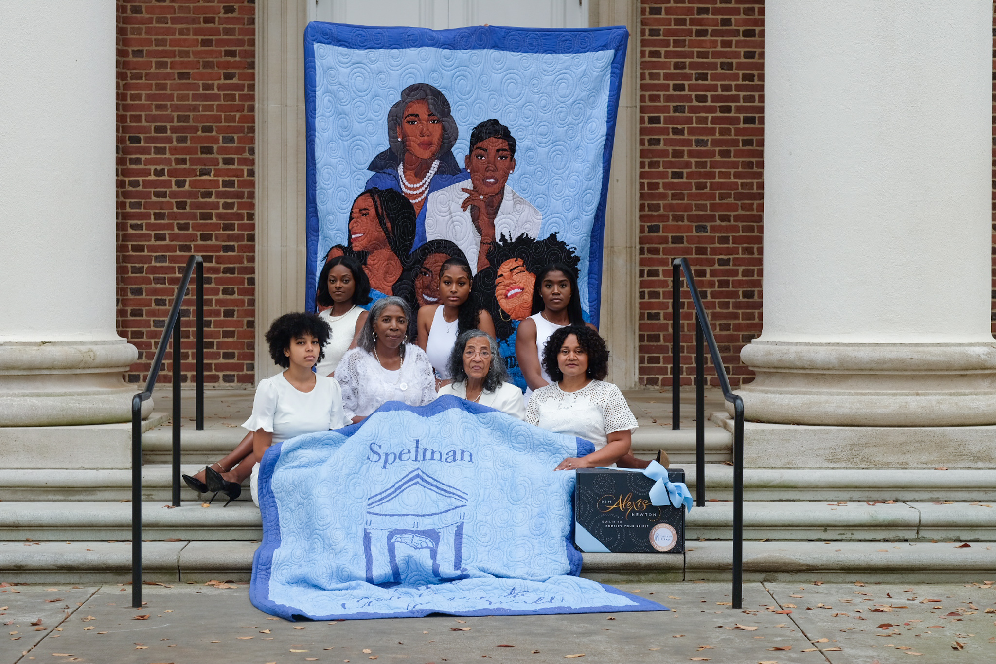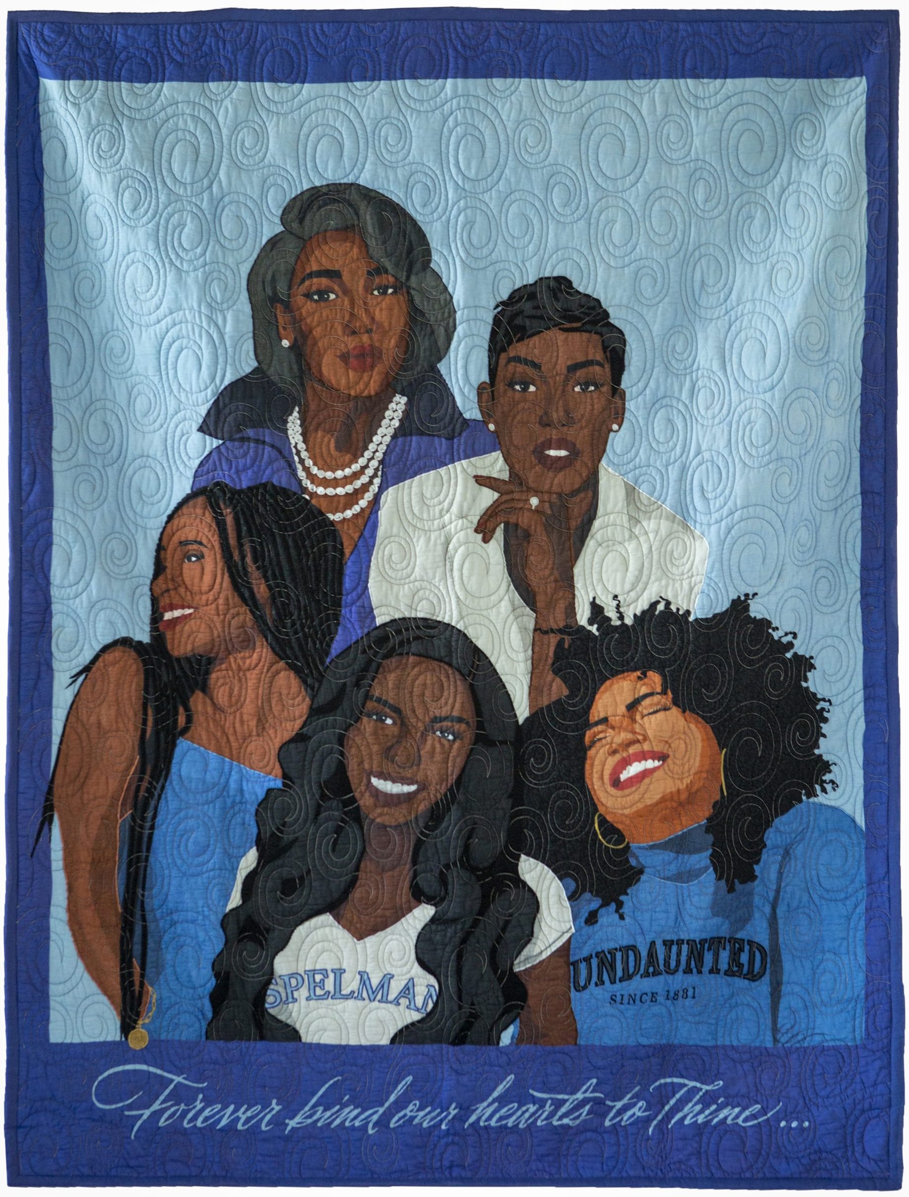 'As a proud graduate and legacy of Fisk University, I know firsthand how enriching an HBCU environment can be. I want to inspire you to unleash your innate and carefully nurtured leadership, intellect, creativity, ethical and academic excellence! I know the Spelman experience is special and membership has its privileges. I embraced all ages, shapes, sizes, hair textures and skin tones, to represent the range of beauty that we share as Black women. The cream and variety of blues represent the diverse experiences tied together by the hymn that represents the experience you all share."